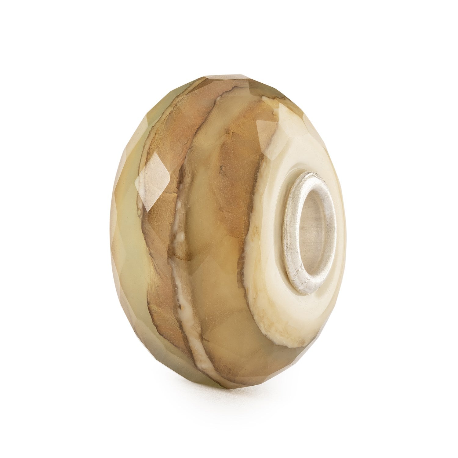 This glass bead is a Waterstone bead. Waterstone beads are inspired by the grace of water and the enduring strength of stones. Their colors are reminiscent of springtime by the lakeshore, and their faceted surface beautifully reflects light, evoking the shimmering surface of a lake. This particular Waterstone features brown, grey, beige and sand hues, inviting the mind to wander to wooden branches and the spiritual feeling of trees. Combine this bead with other Waterstone beads or your favorite meaningful beads made from other materials.