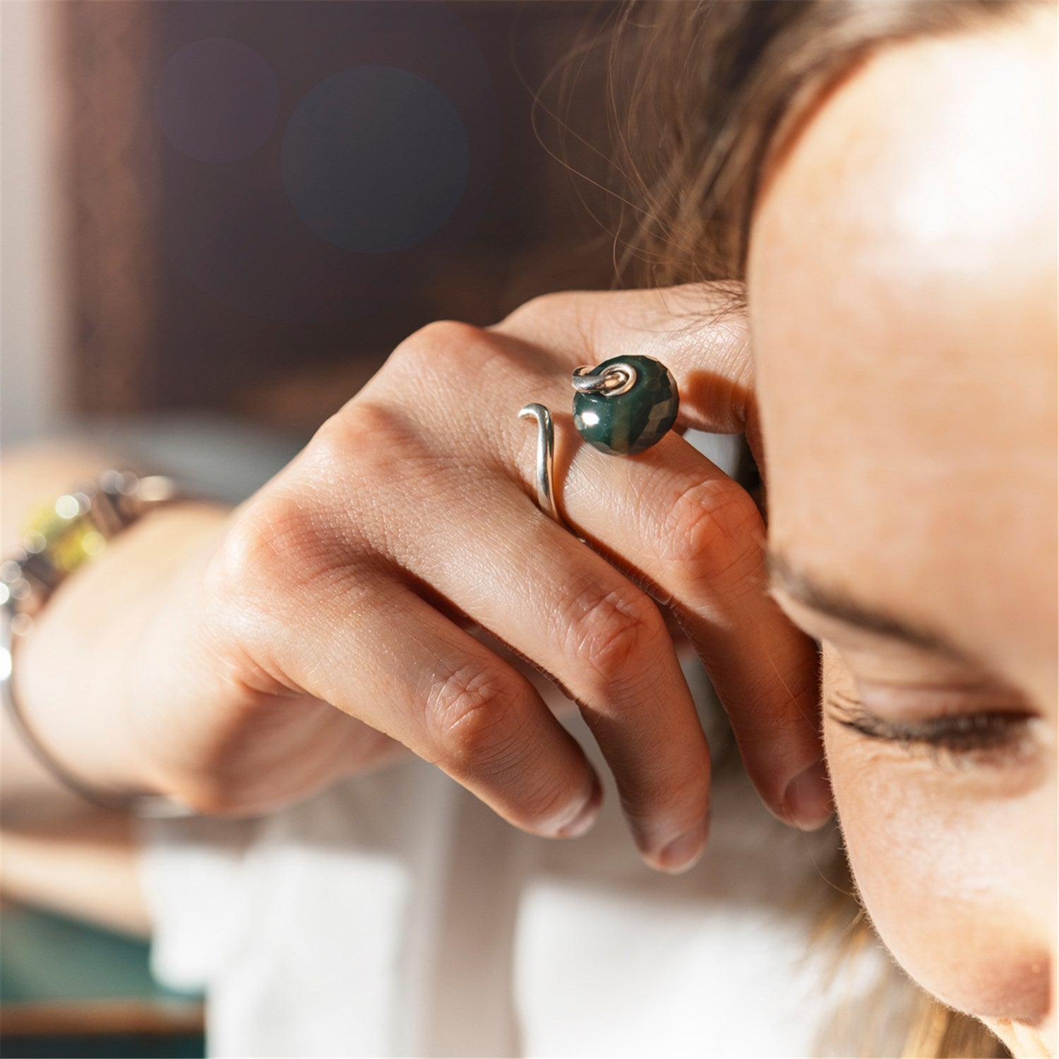 This faceted bead beautifully catches and reflects the light, revealing timeless dark green tones. Pair it with your favorite beads on a bracelet, ring, or necklace. It adds striking contrast and depth when combined with colorful or silver beads, and truly stands out alongside freshwater pearls or neutral-toned glass and gemstone beads.