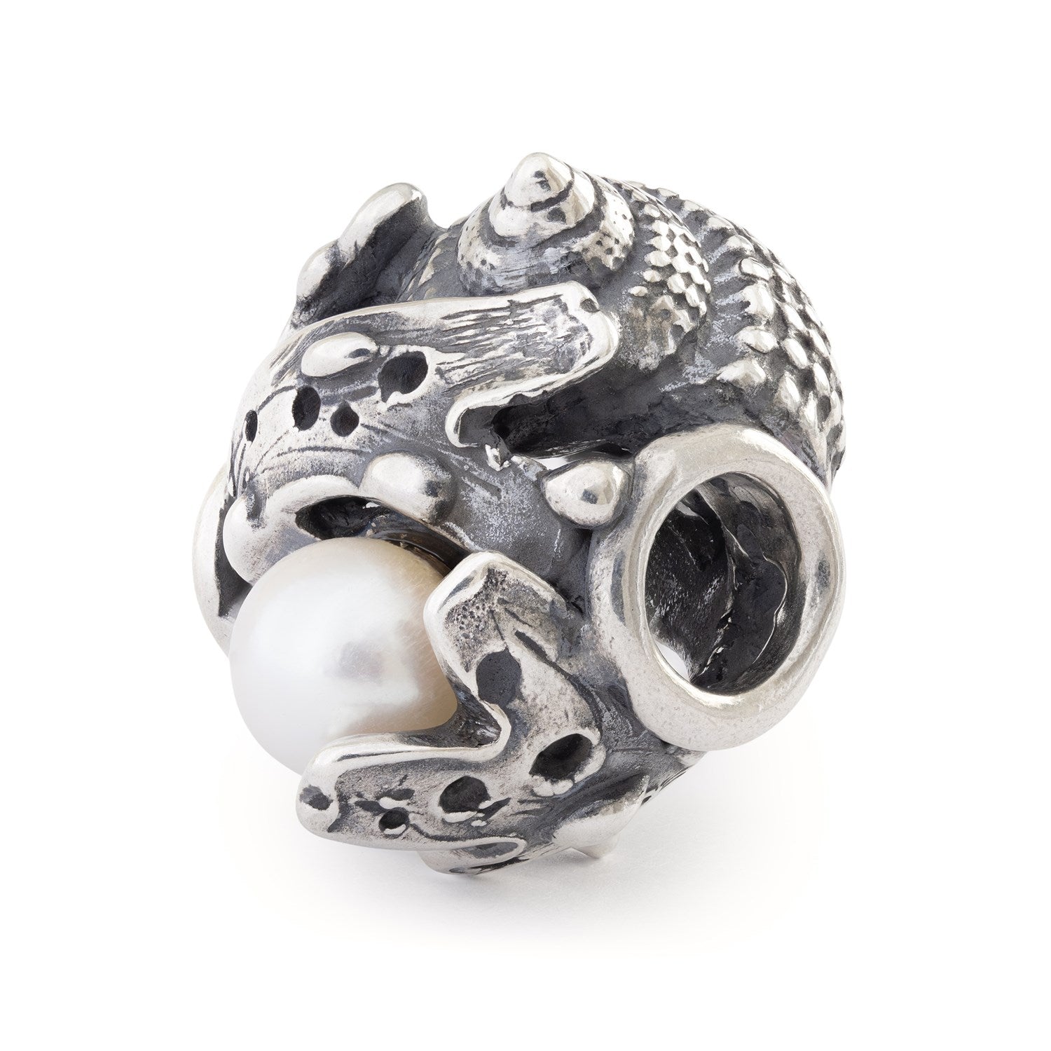 This sterling silver bead is crafted with exquisite detail, depicting a beautiful seashell surrounded by swirling waves — or perhaps seaweed, depending on the eye of the beholder.