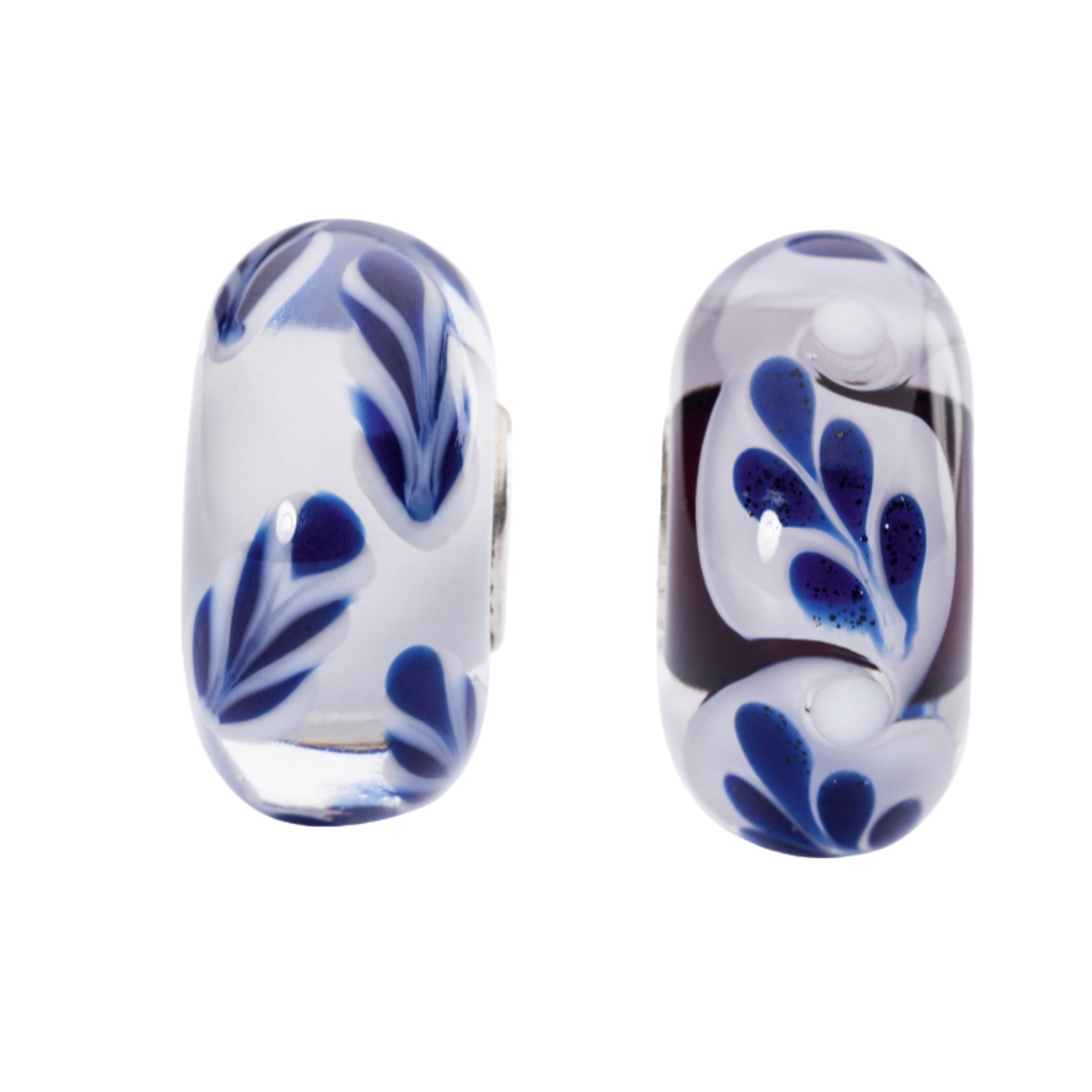A soft blue and white duo that captures early summer light, warm fields and petals in bloom. Both beads look to the morning light giving way to the full power of summer and the memories it holds.